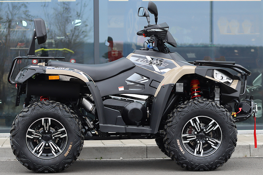 | Dotări | Cârlig de remorcare omologat, troliu electric de 1360 kg cu telecomandă, apărători pentru mâini, bară de protecție față/spate, suporturi pentru bagaje față/spate, port USB, faruri LED-Matrix |