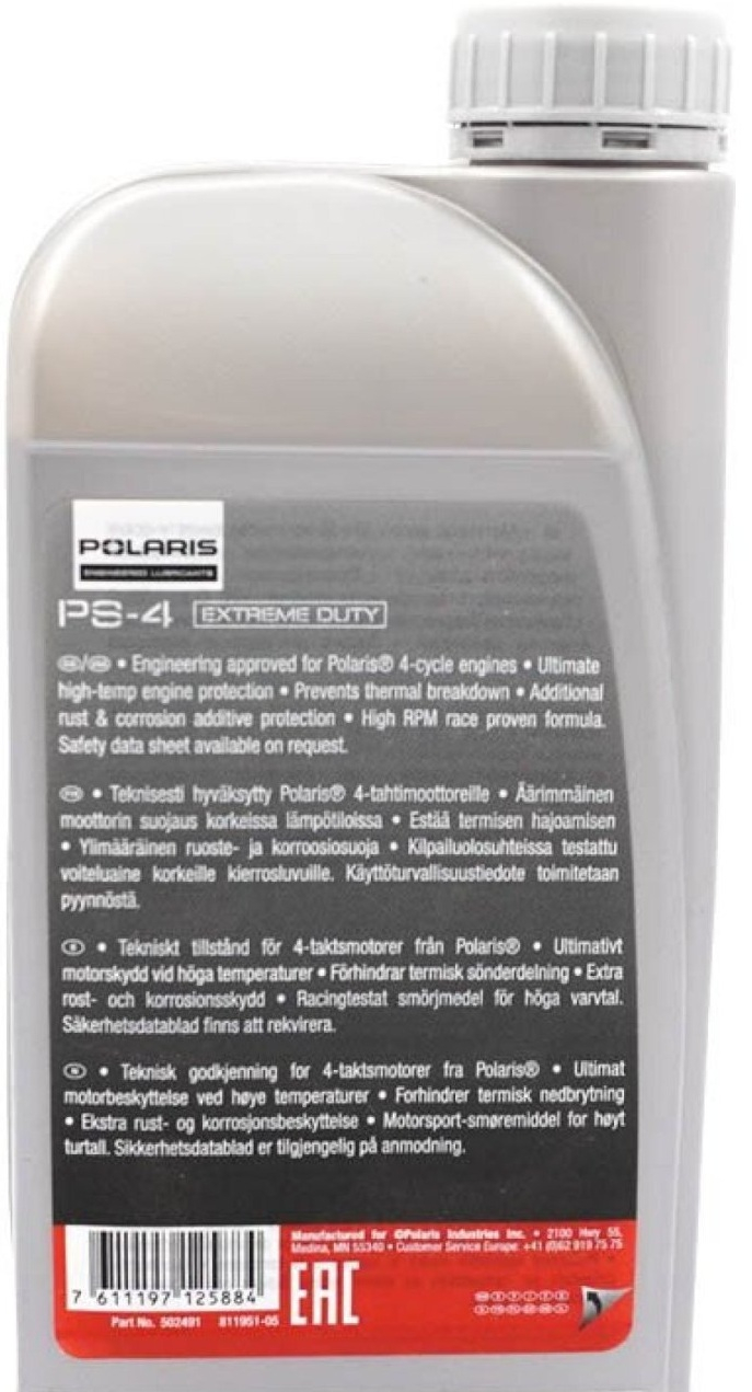 Sistemul de aditivi brevetat de Polaris este formulat pentru a reduce uzura componentelor motorului, a preveni oxidarea la temperaturi extreme și a preveni rugina și coroziunea prin controlul umidității motorului. Agenții anti-uzură brevetați oferă protecție împotriva uzurii motorului și performanțe care nu se regăsesc în uleiurile auto sau aftermarket. PS-4 Extreme Duty este conceput să reziste la forfecare sau diluare a uleiului mai mult timp decât uleiurile aftermarket de top pentru sporturi cu motor.